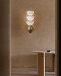 Modern Triple Alabaster Brass Stone Semi-Oval Wall Sconces 21"H