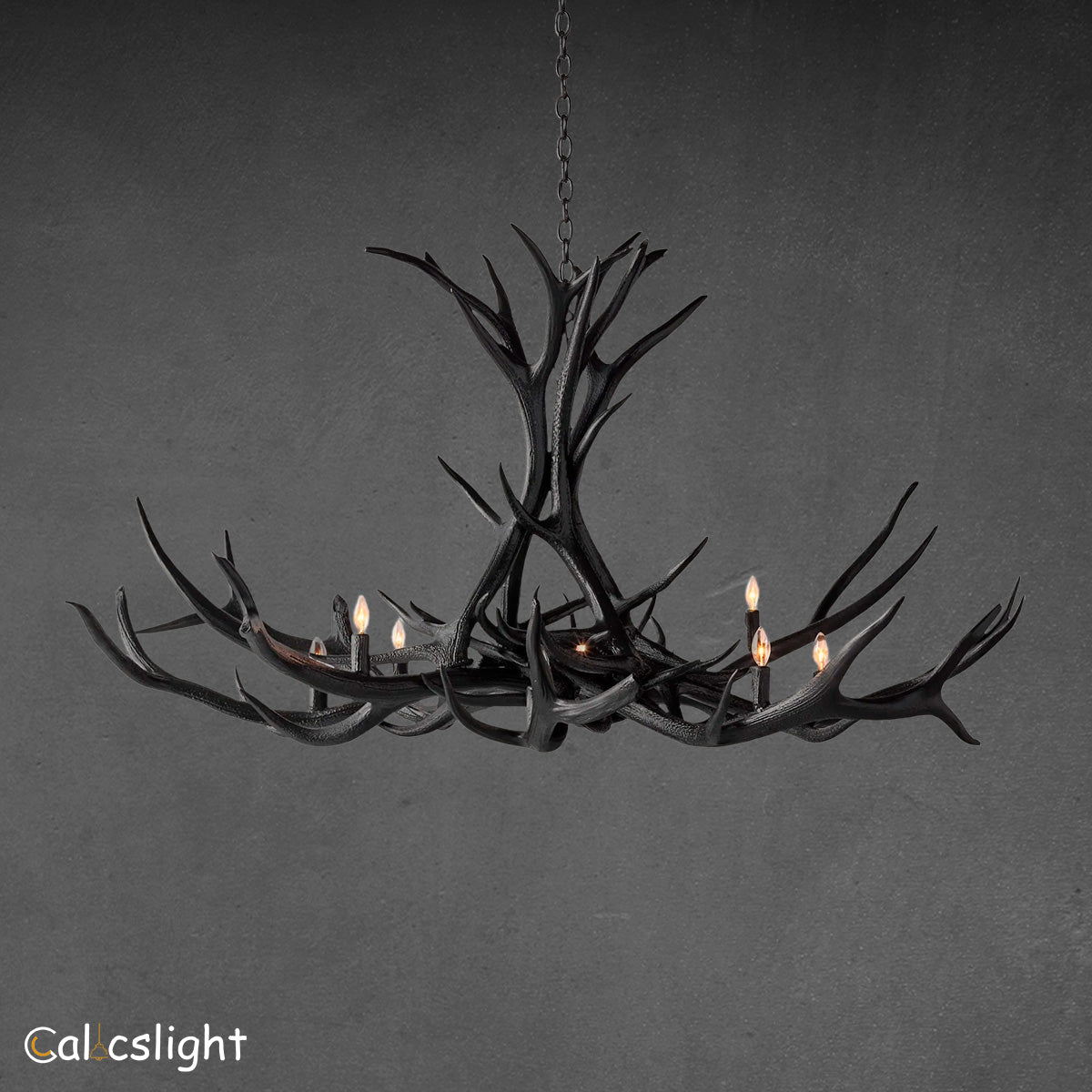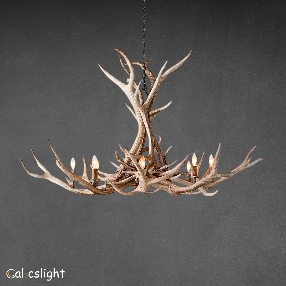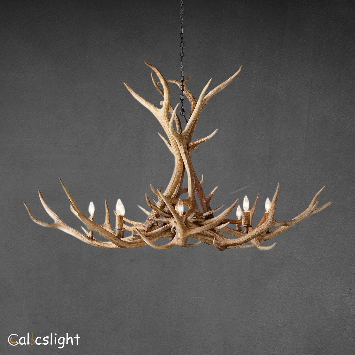 Handcrafted from naturally shed antlers, our rustic chandelier conveys the beauty of this natural form in a striking sculptural grouping. Candlestick lights impart a warm glow, casting dramatic shadows.