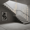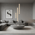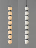 The Orbique Pendant draws inspiration from molecular geometry and minimalist sculpture. Composed of alabaster orbs interspaced with polished metal joints, it forms a vertical rhythm of light and form. Whether clustered or solo, it creates a dynamic focal point in modern interiors—combining precision with poetry.