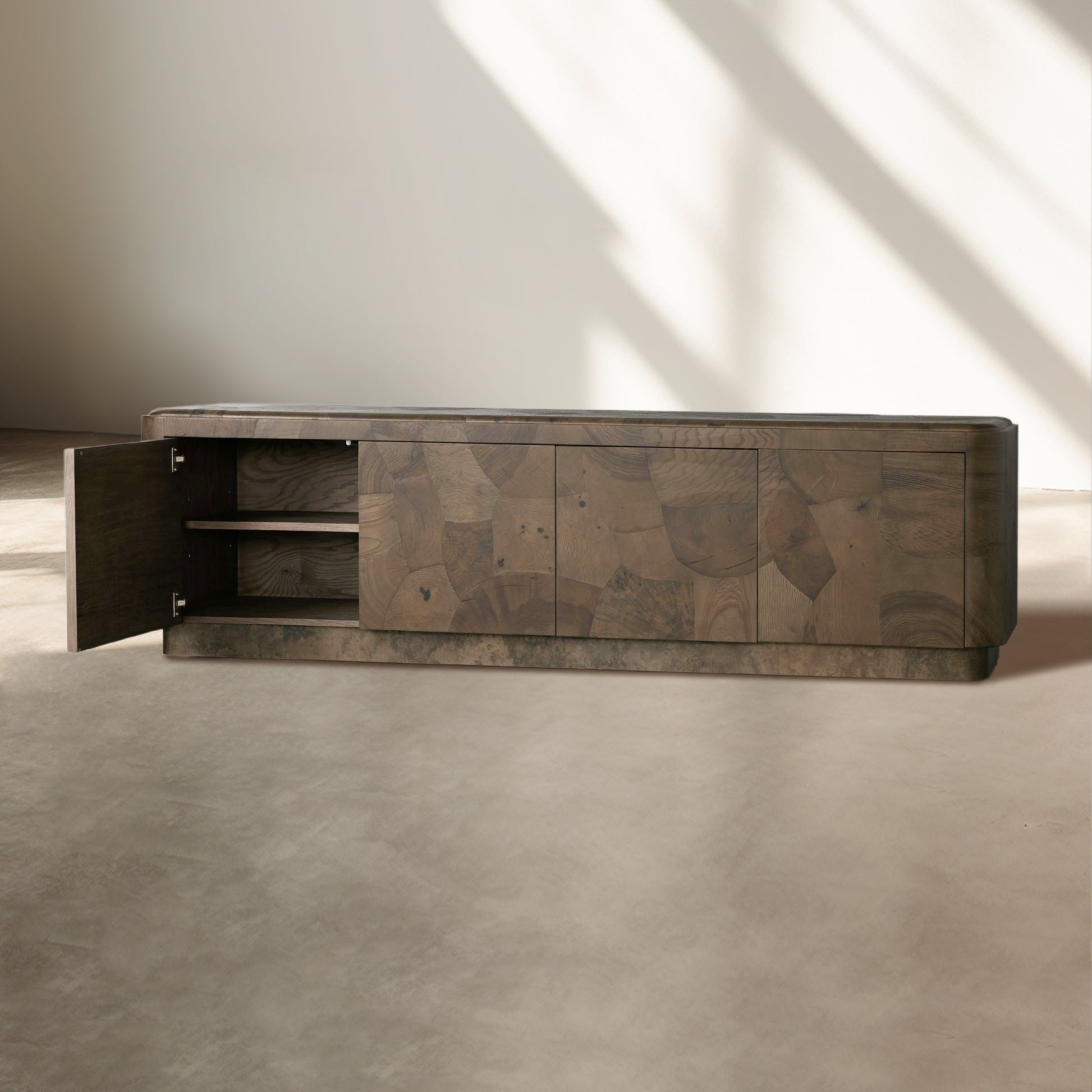 The Pola Media Console features a sleek and modern design, providing a stylish addition to any room. With its sturdy construction and ample storage space, this console is perfect for organizing your media devices and accessories. Made from high-quality materials, it is built to last for years to come.
