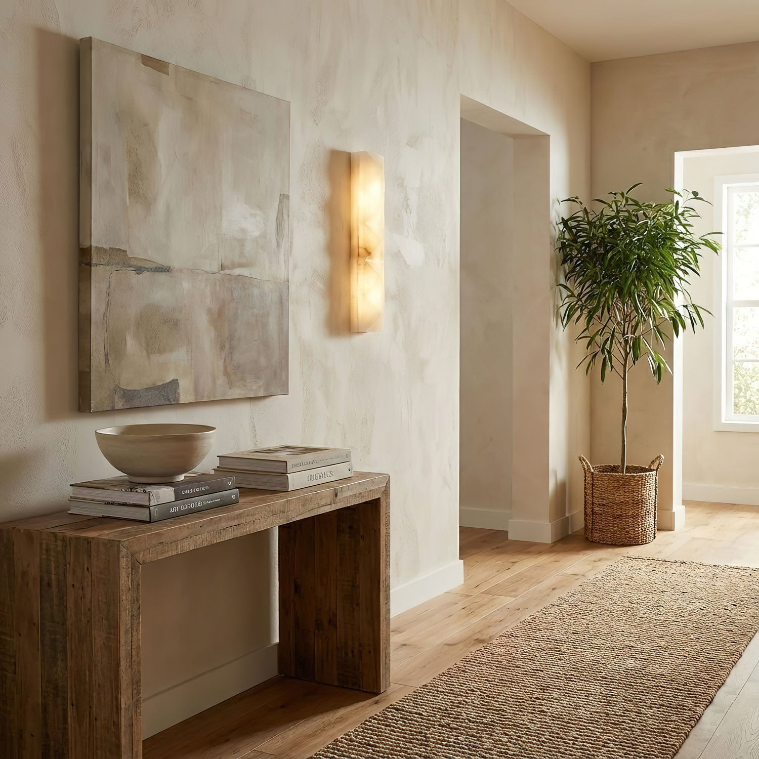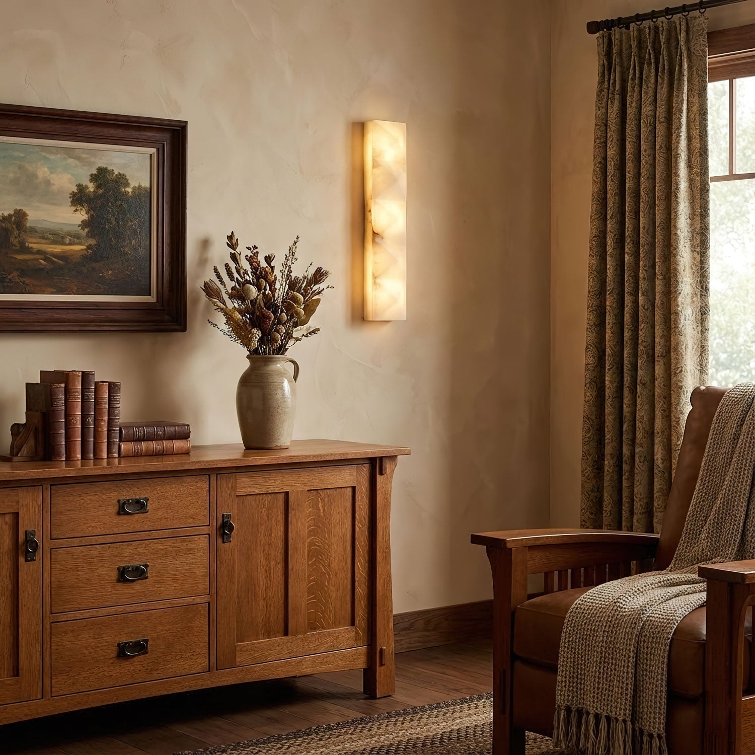 The Calicslight Prism Alabaster Wall Sconce showcases a refined interplay of light and texture through its faceted design and alabaster-inspired finish. Its elongated, geometric form brings a sculptural elegance to any space, while the soft, translucent surface diffuses light beautifully, creating a warm, ambient glow. Perfect for flanking mirrors, illuminating hallways, or adding subtle sophistication to living areas, this sconce is a modern statement piece that complements both minimalist and luxe interiors.