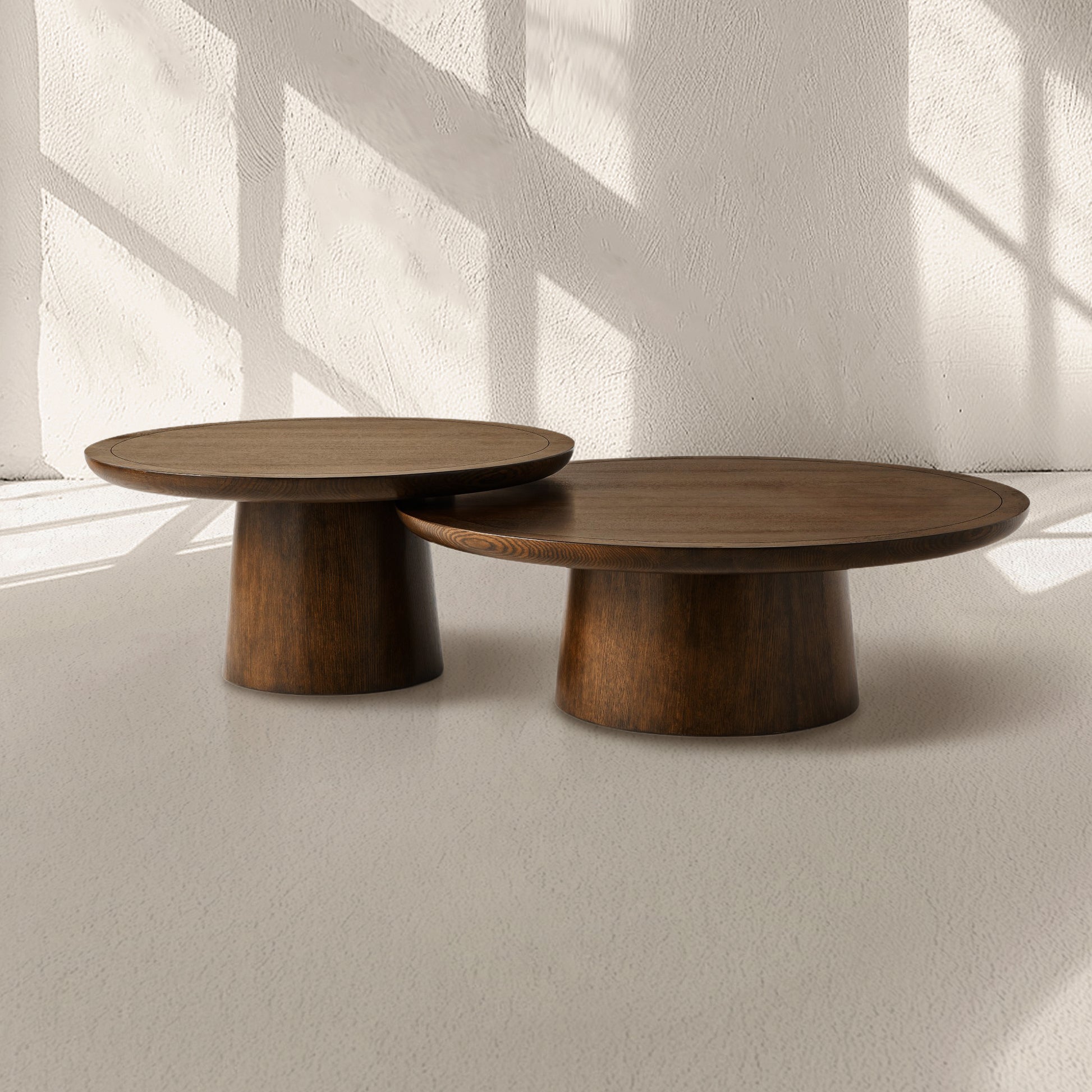 Crafted with clean lines and a warm oak veneer, this duo of nesting tables blends seamlessly into both classic and contemporary spaces. The neutral hue and organic wood grain add understated elegance, while the space-saving nested design offers flexible functionality.