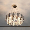 Serene Leaf Ring Chandelier 32" showcases a refined circular frame adorned with delicate leaf-inspired accents, blending natural elegance with modern design. Measuring 32 inches in diameter, it's ideal for dining rooms, living spaces, or entryways. Crafted from premium materials, this chandelier offers soft, ambient lighting while serving as a sophisticated focal point in any contemporary or transitional interior.
