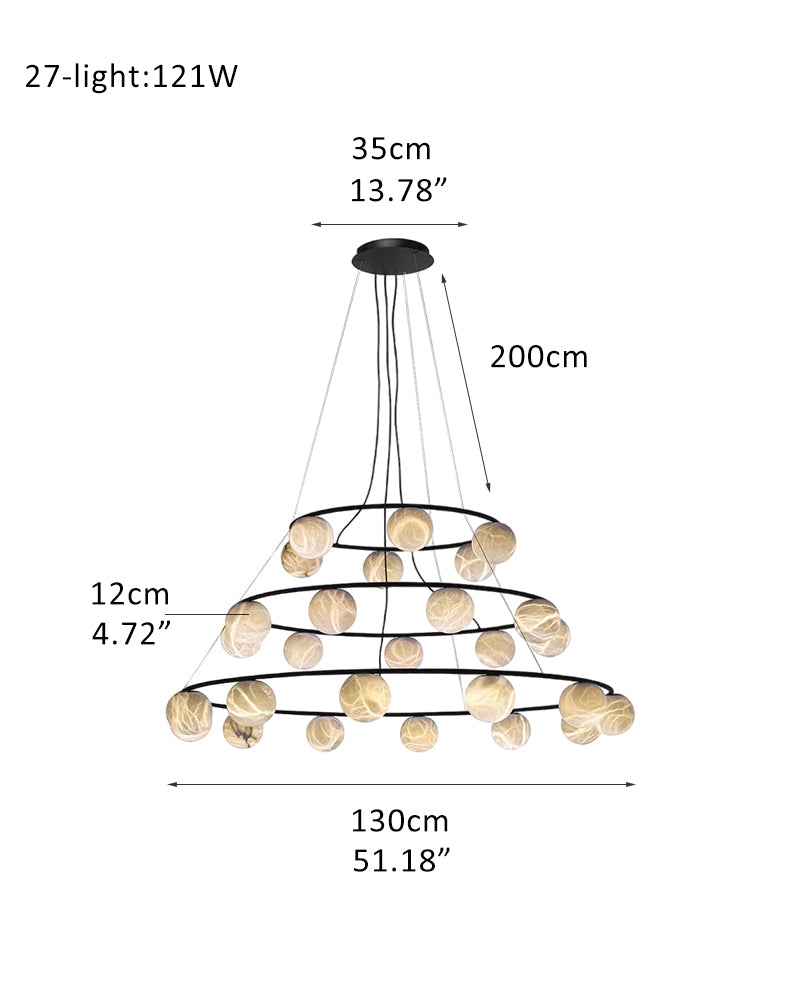 Single/Triple Spiral black ring cluster alabaster 6/9/12/27 balls chandelier