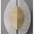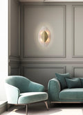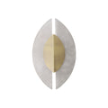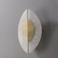 The Solari Alabaster Leaf Sconce is a harmonious fusion of organic elegance and sculptural geometry. Featuring two finely carved alabaster wings split by a central brass leaf, this design evokes a sense of balance and quiet sophistication. When lit, the natural veining of the alabaster emits a warm, diffused glow, transforming your space with a soft, radiant ambiance. Ideal for hallways, dining rooms, or feature walls, this sconce is both a functional light source and a statement piece of art.