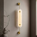 Elevate your space with the ethereal elegance of the Calicslight Solvane Alabaster Wall Sconce. Solvane evokes the feeling of light suspended in quiet motion. Its elongated, pill-shaped alabaster-style body glows softly from within, framed by minimalist brass hardware that gives the fixture a sense of weightless balance. Perfect for hallways, dining rooms, or modern living spaces, the Solvane casts a warm, ambient glow while doubling as a sculptural design piece. Subtle yet striking, it’s an embodiment of timeless modern luxury.
