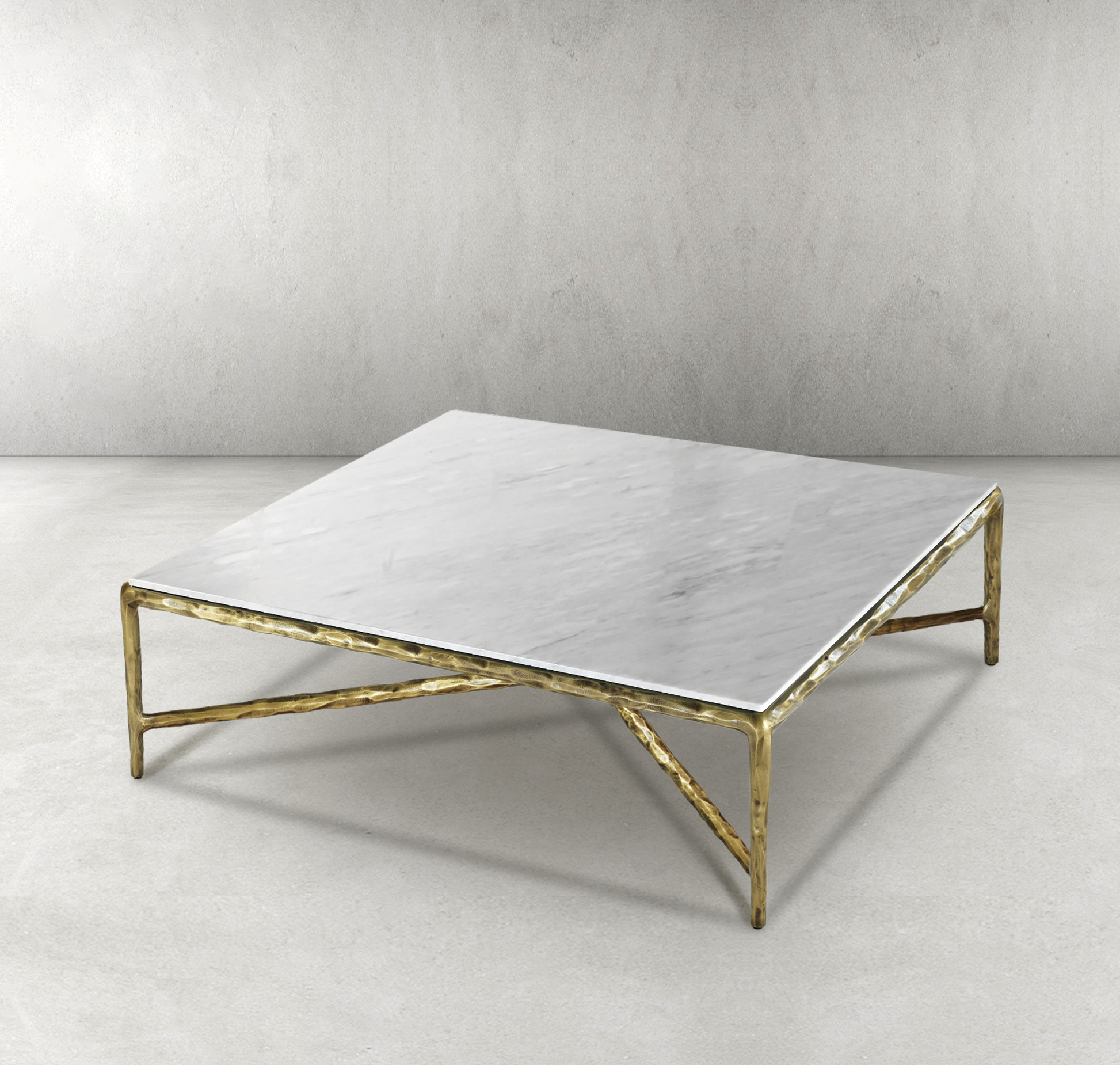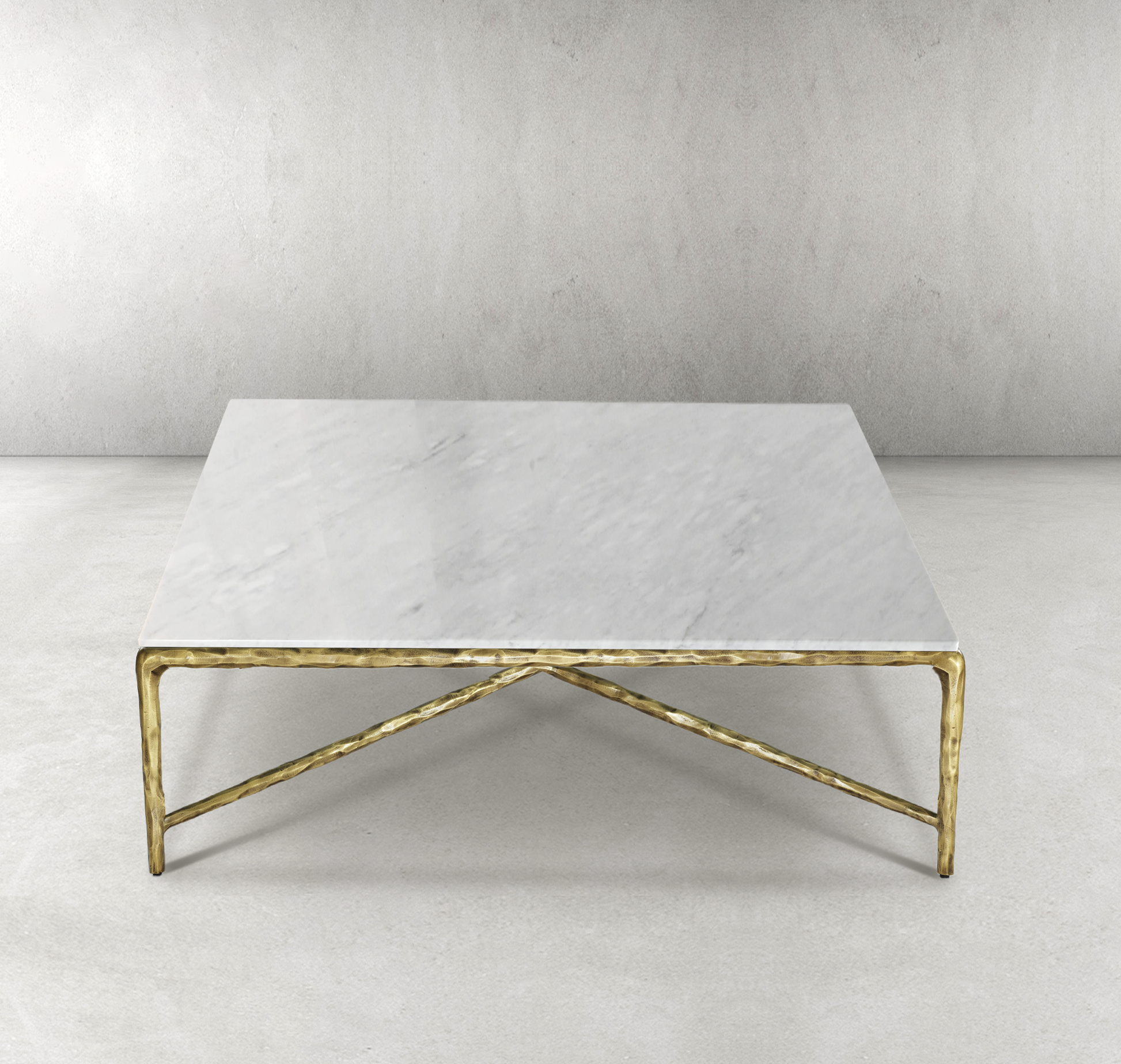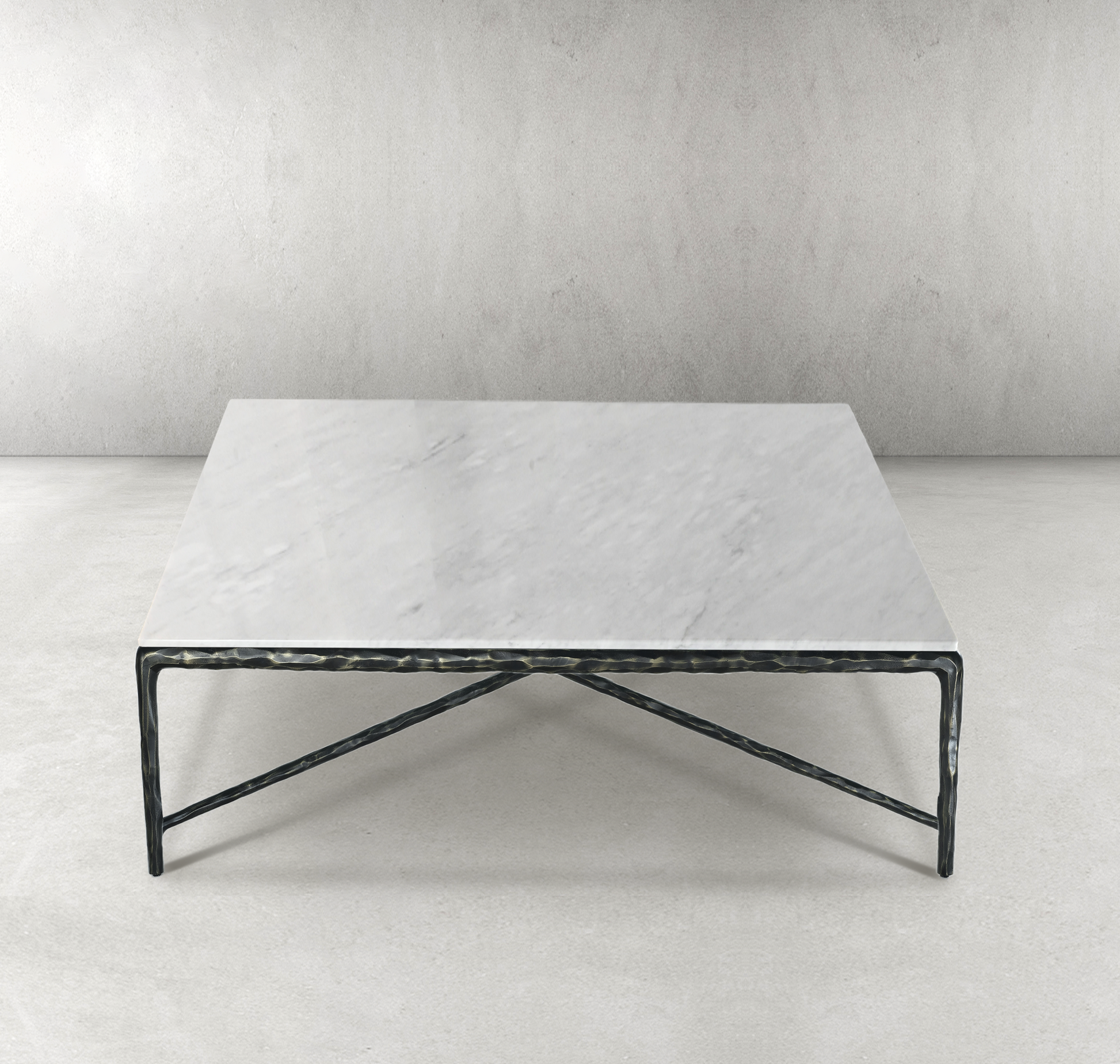 The Thaddeus Marble Square Coffee Table is a refined piece that combines the elegance of Italian Carrara marble with the strength of hand-forged metal.