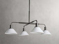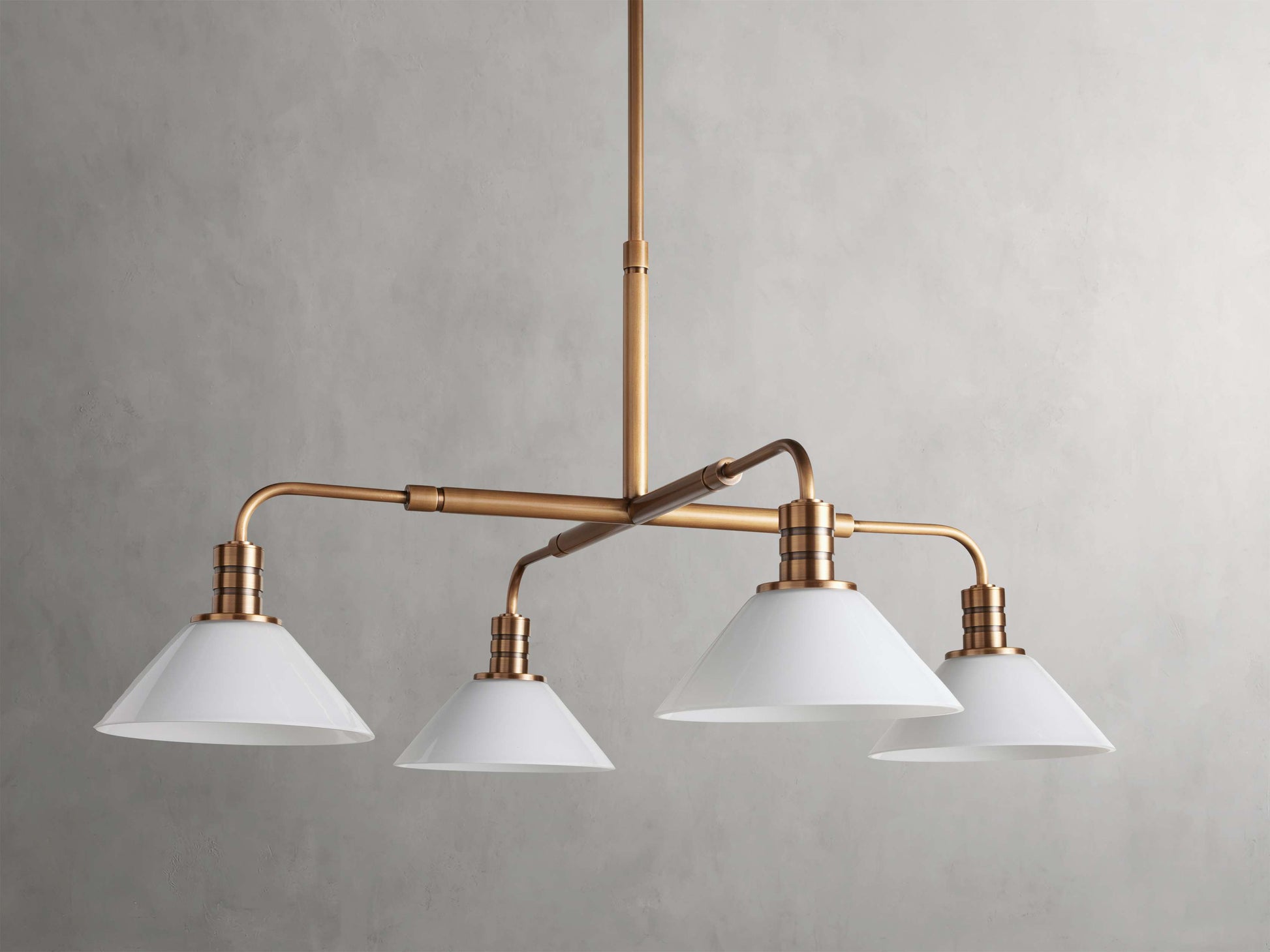 Crafted from steel in either a brass or bronze finish with your choice of clear or milk glass cones.