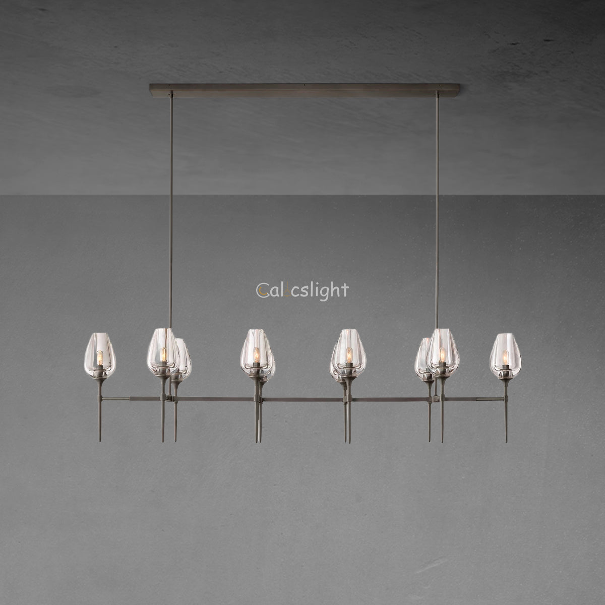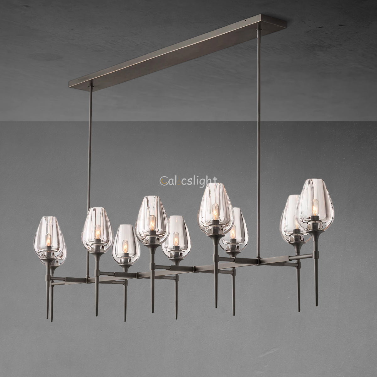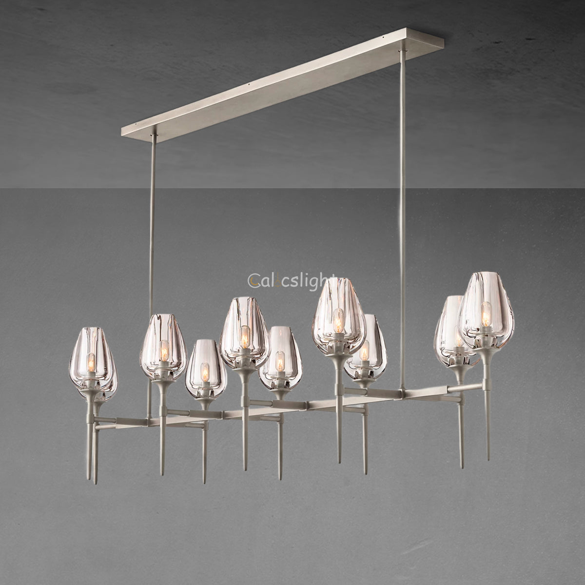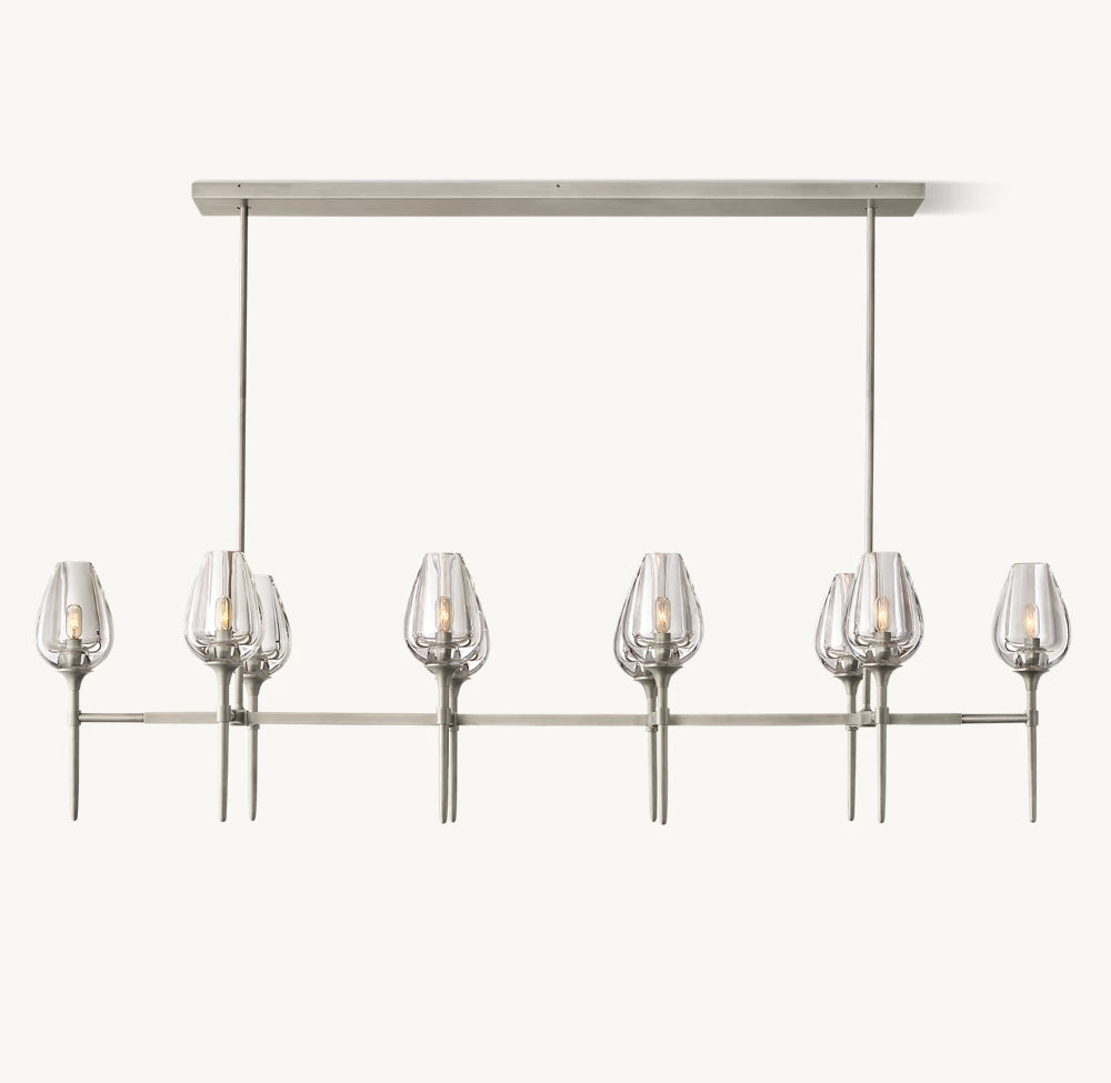 The Tulip Linear Chandelier, 65", embodies modern elegance with its elongated, tulip-inspired silhouette and luxurious finishes. Ideal for grand dining rooms or entryways, it radiates a soft, ambient glow, enhancing upscale interiors. Crafted with precision and premium materials, this chandelier combines artistic design with functionality, creating a striking centerpiece that elevates any space with refined sophistication.