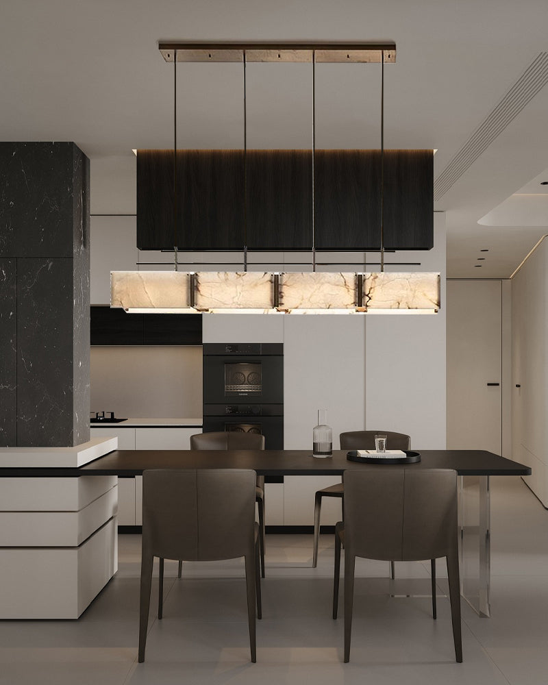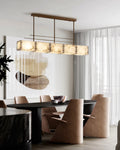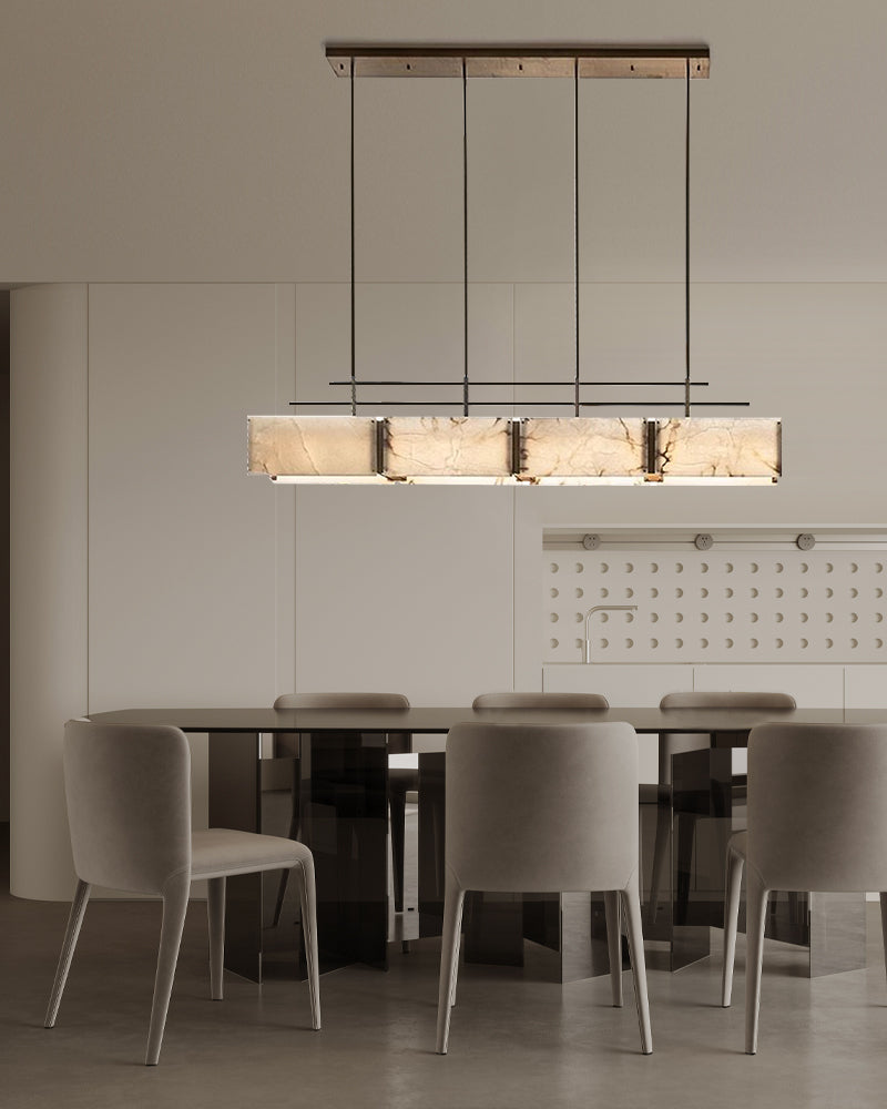 Elevate any space with our chic Alabaster Chandelier! Featuring a contemporary design, this chandelier boasts luxurious alabaster and gold details, making a perfect addition to your dining room, bedroom, or living room. Add sophistication and elegance to your home with this must-have lighting fixture!