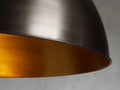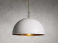 Our Watley Dome Pendant boasts a modern and minimalistic design with a chic brass finish on its interior, while chains add a delicate, decorative accent to its overall look.