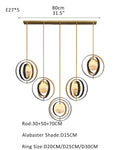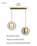 White Alabaster Round Ceiling Pendant Lamp - Gold & Bronze Rotatable Ring