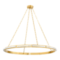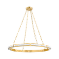 Sophisticated and serene, Wingate features a large Aged Brass ring adorned with alabaster. The concealed LED radiates a bright glow, illuminating the alabaster and reflecting off the brass. Marrying the organicism of the stone with the distinguished look of the brass strikes a stylish, modern note. Available in two sizes, Wingate hangs as a modern showpiece.*Due to the one-of-a-kind nature of the medium, exact colors and patterns may vary slightly from the image shown.