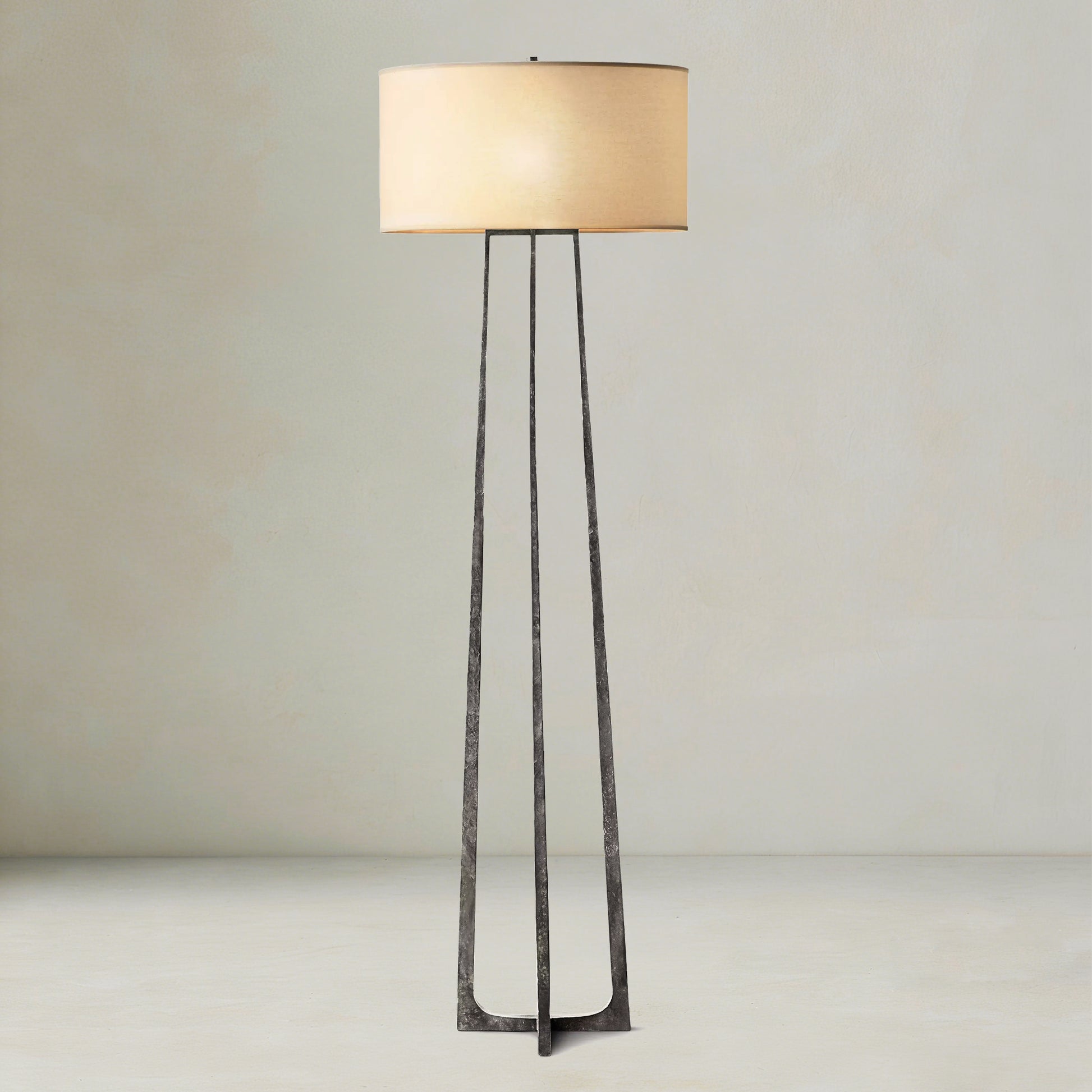 Simple and elegant, our Waring Floor Lamp embodies the beauty of refined minimalism. A hand-forged hammered metal frame accentuates a meticulously tailored white linen shade. It masterfully balances form and proportion, weaving light and shadow while seamlessly blending sharp angles with subtle curves.