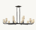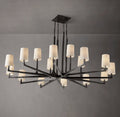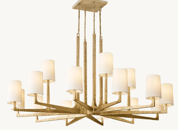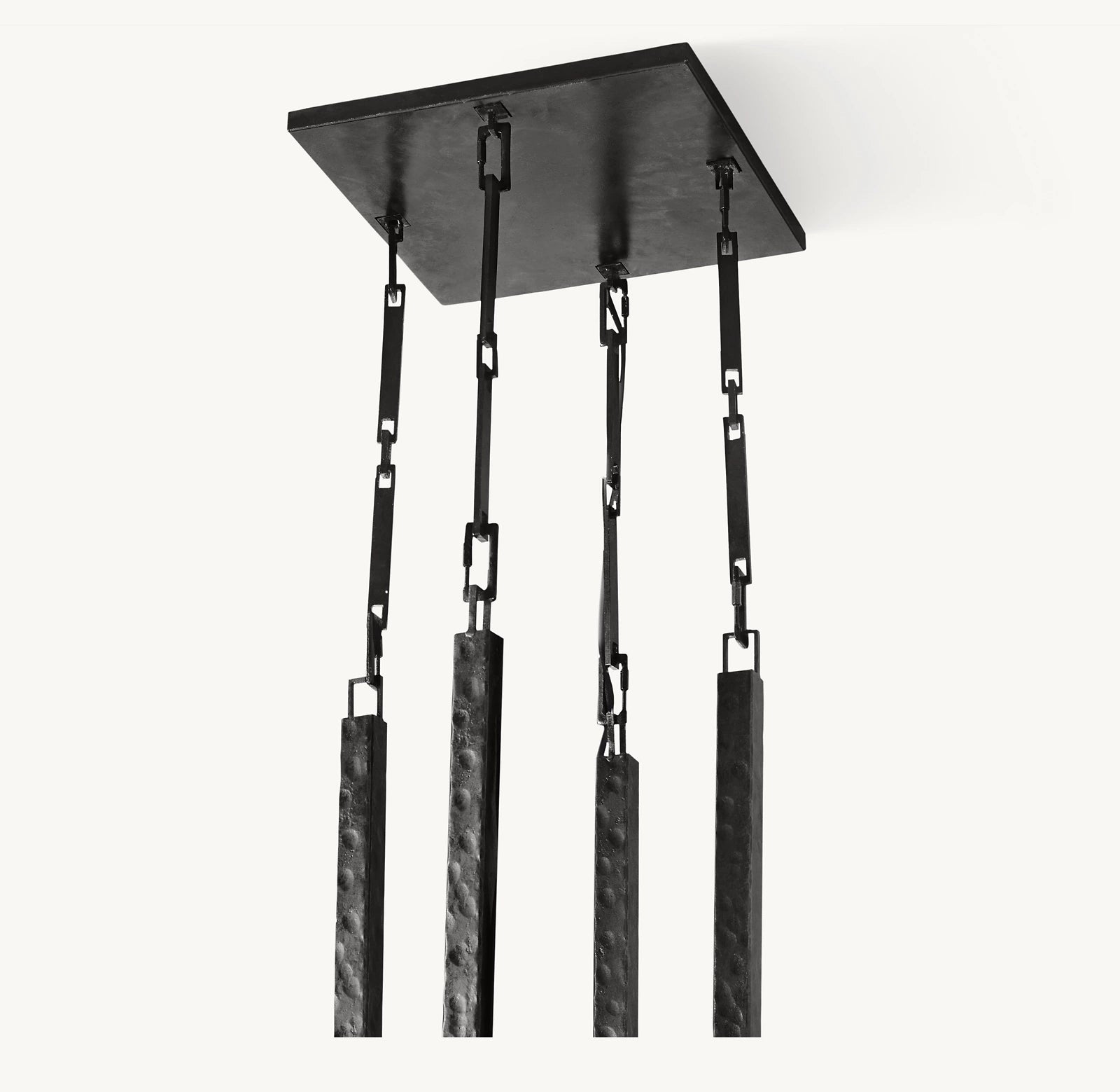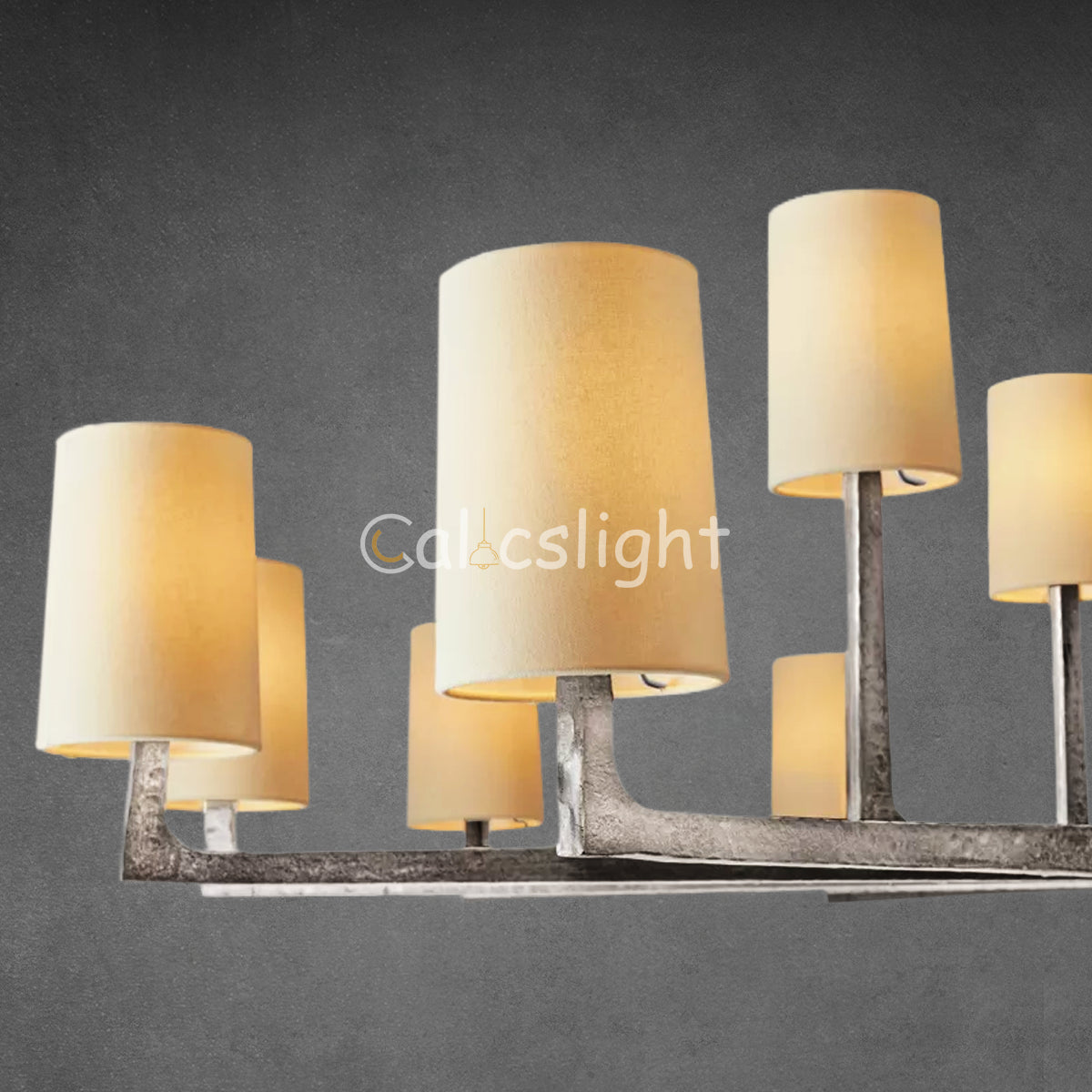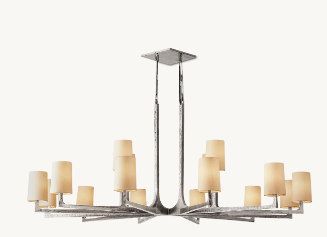 The hand-forged, hammered metal frame - with perfectly tapered arms - showcases a tailored white linen shade. In balance and proportion, it blends light and dark, crisp right angles and understated curves.